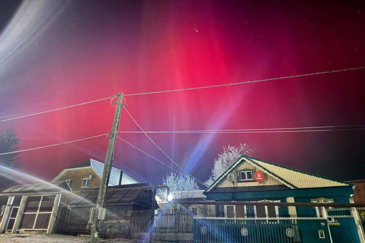 В Высокогорском районе Татарстана очевидцы зафиксировали необычное природное явление. Рано утром 12 ноября на небе возникло северное сияние, раскрасив его в палитру зеленых и розовых оттенков.